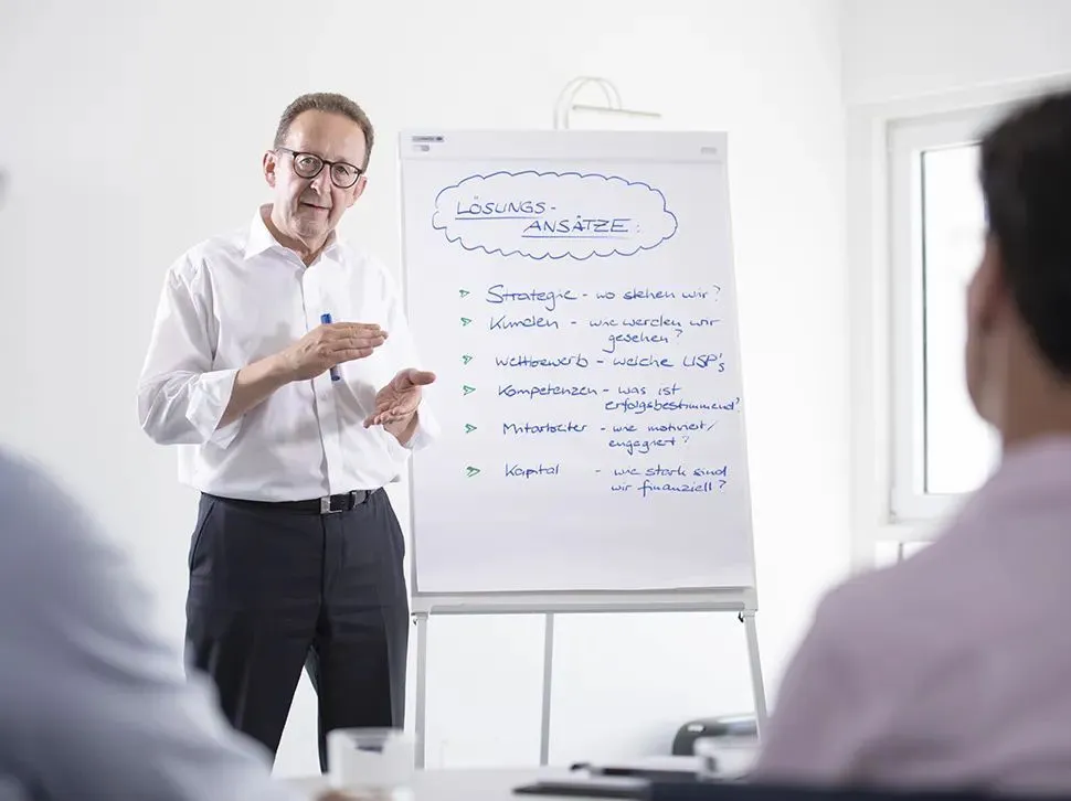 Gemeinsam mit Unternehmern und Management werden strategische Fragestellungen strukturiert analysiert